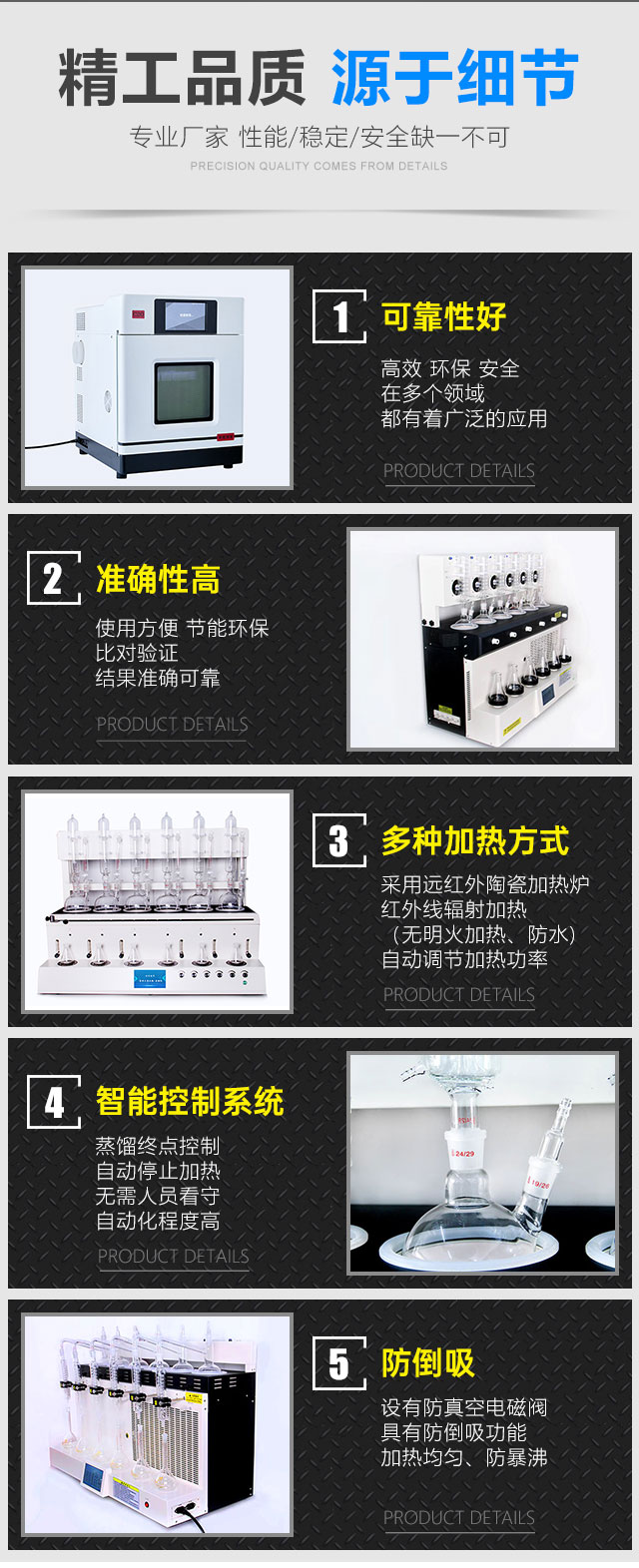 公司主要产品有微波消解仪、微波水热合成仪、微波合成萃取仪、全自动智能蒸馏仪,智能一体化蒸馏仪、一体化蒸馏仪,水蒸气蒸馏仪,食品/中药材二氧化硫蒸馏仪、索氏提取器/脂肪测定仪,水质硫化物酸化吹气仪,石墨消解仪、石墨电热板、尿碘消解仪、陶瓷纤维马弗炉、陶瓷纤维管式炉、制冷水循环器、垂直振荡器、翻转振荡器等前处理设备。